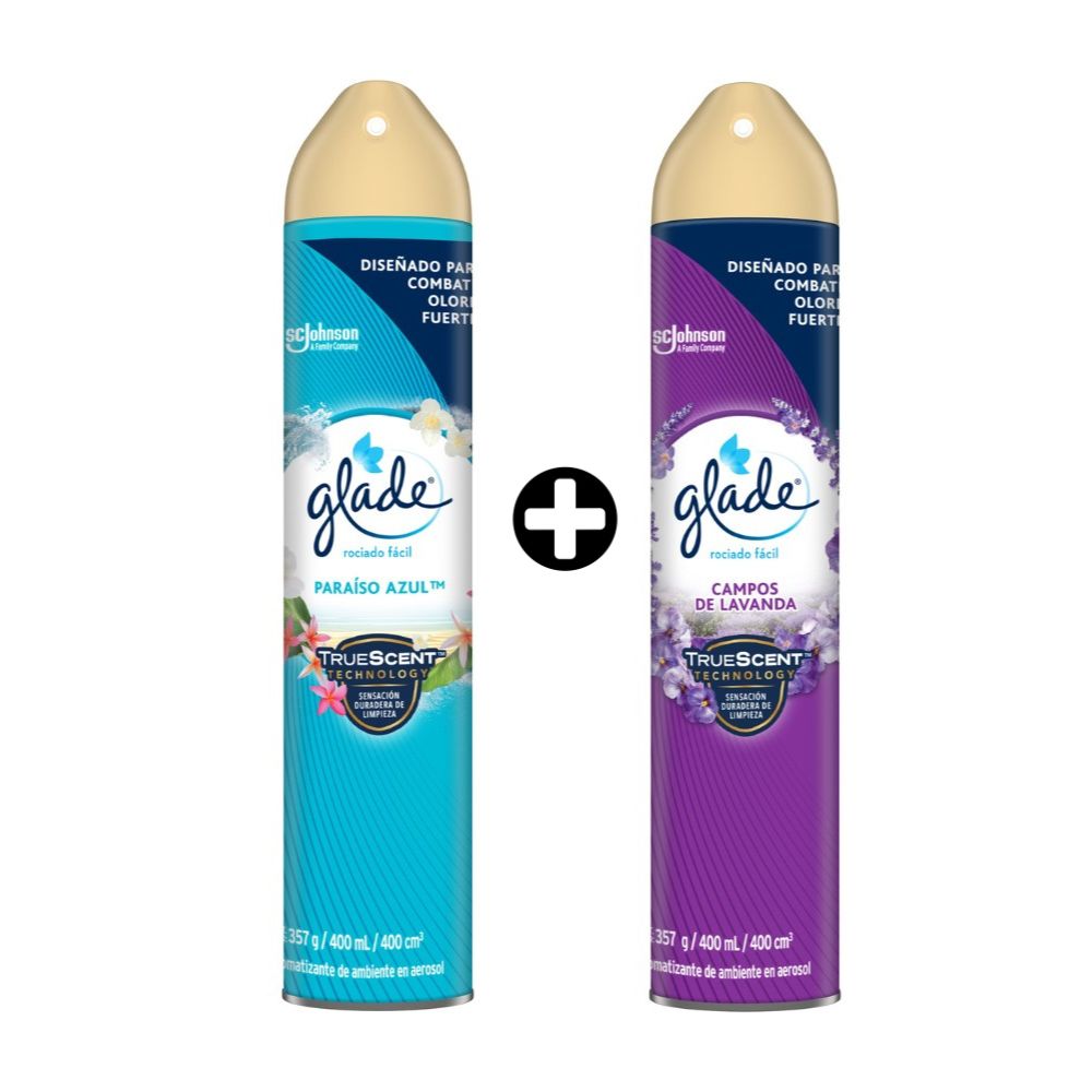 COMBO Ambientador en spray Glade Paraíso Azul x 400ml + Ambientador en spray Glade Lavanda x 400ml