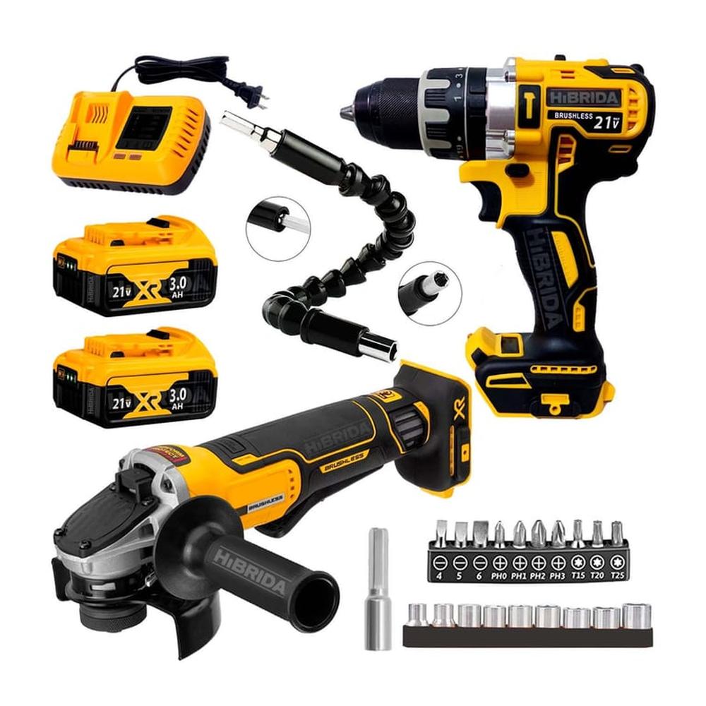 Combo Brushless Taladro Percutor Atornillador ½ Amoladora Más Puntas