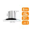 Campana: 90 (ancho) x 45 (largo) x 82(alto) cm Horno: 59.5 ancho x 57 prof. x 58.5 alto cm |