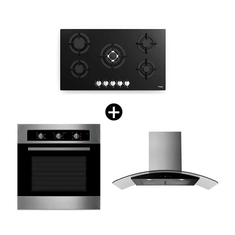 COMBO Cocina encimera Praga 87cm + Campana decorativa Praia 90cm + Horno a gas 70 litros