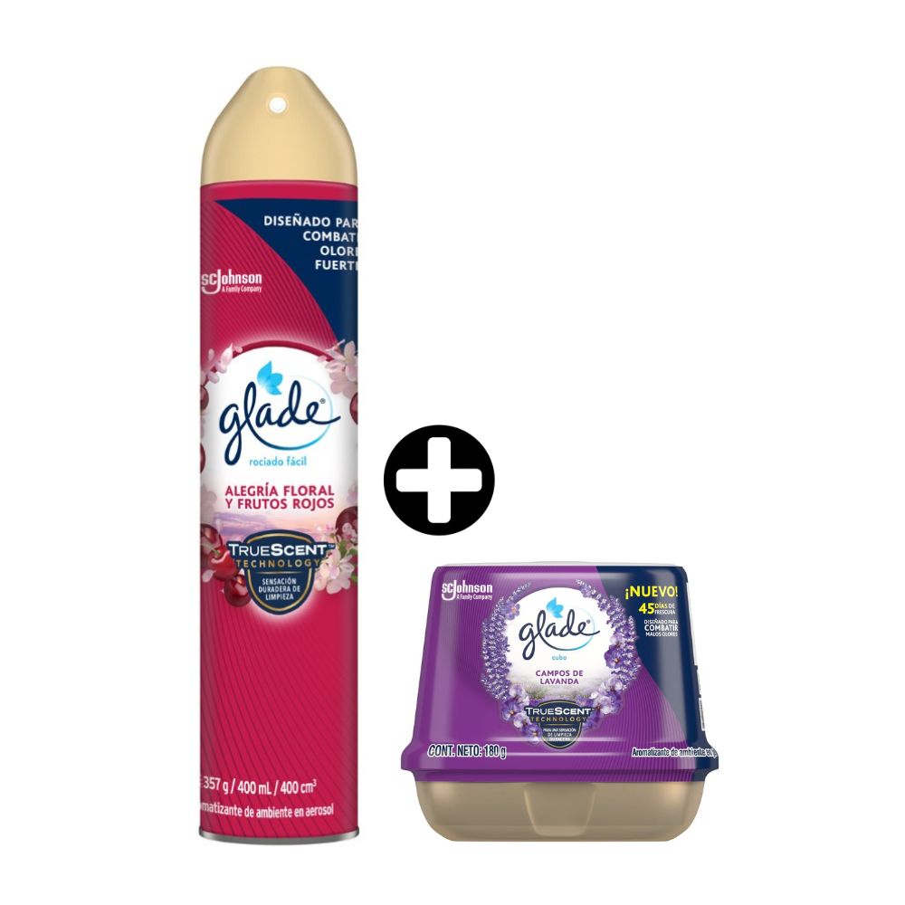 COMBO Limpieza Glade: Cubo Lavanda 180gr + Ambientador Aerosol Alegria Floral 400ml