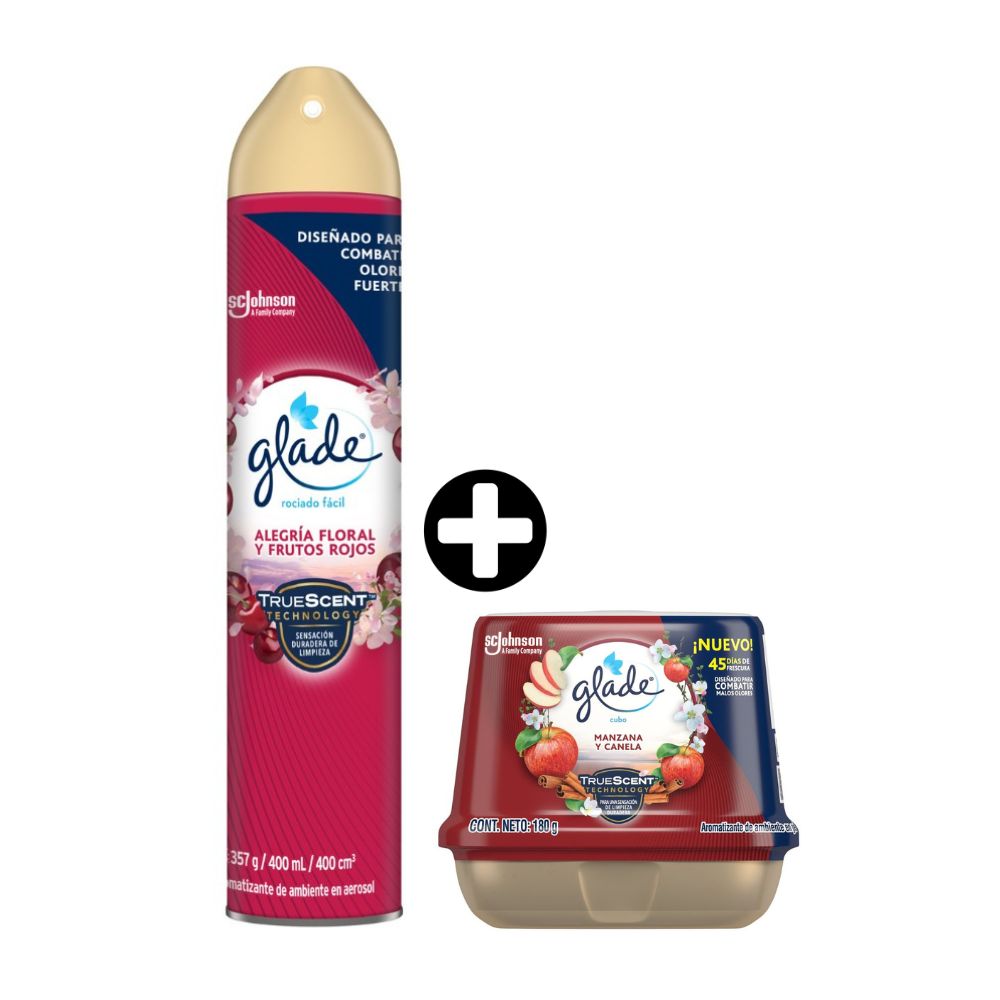 COMBO Limpieza Glade: Cubo Manzana Canela 180gr + Ambientador Aerosol Alegria Floral 400ml