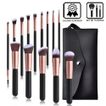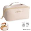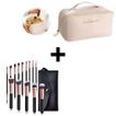 Combo Neceser Estuche De Cosméticos Beige + Brochas de Maquillaje profesionales Set 15 piezas Negro