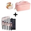 Combo Neceser Estuche De Cosméticos Rosa + Brochas de Maquillaje profesionales Set 15 piezas Negro
