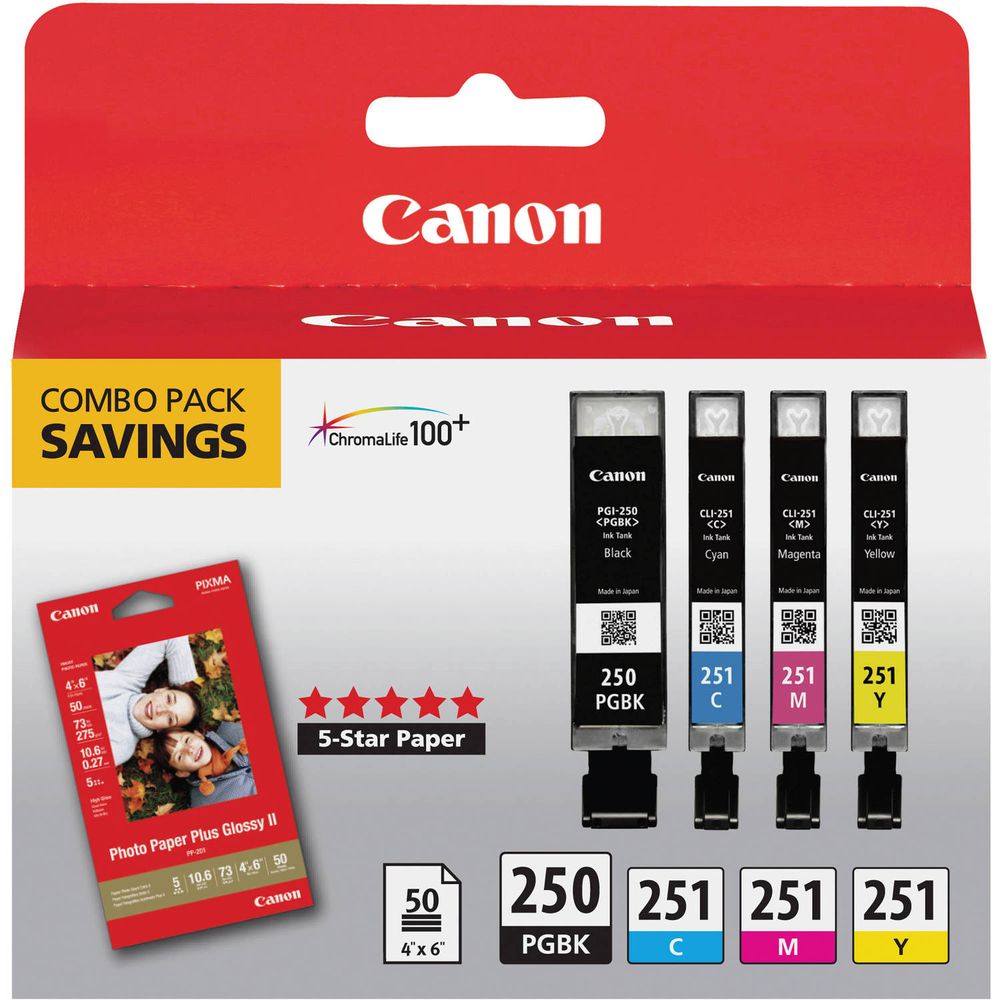 Combo Pack de 4 Cartuchos Canon Pgi 250 Cli 251 con Papel Fotográfico 4 X 6 50 Hojas - 1026799-REG
