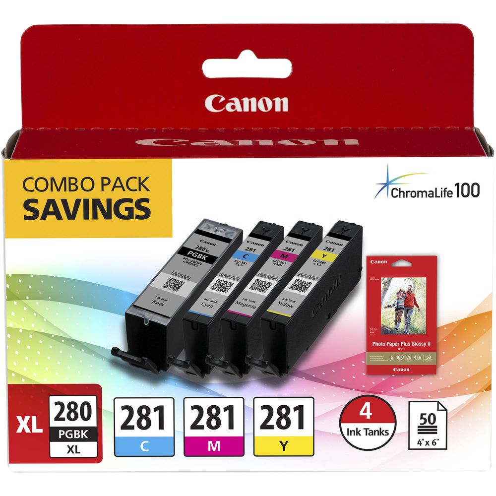 Combo Pack de Tanques de Tinta Canon Pgi 280 Xl Cli 281 de 4 Colores con Papel Fotográfico de 4 X - 1356609-REG