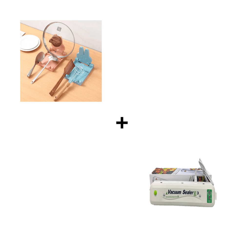 Combo Posa Cucharon y Tapa Conejo + Maquina Selladora al Vacio Blanco