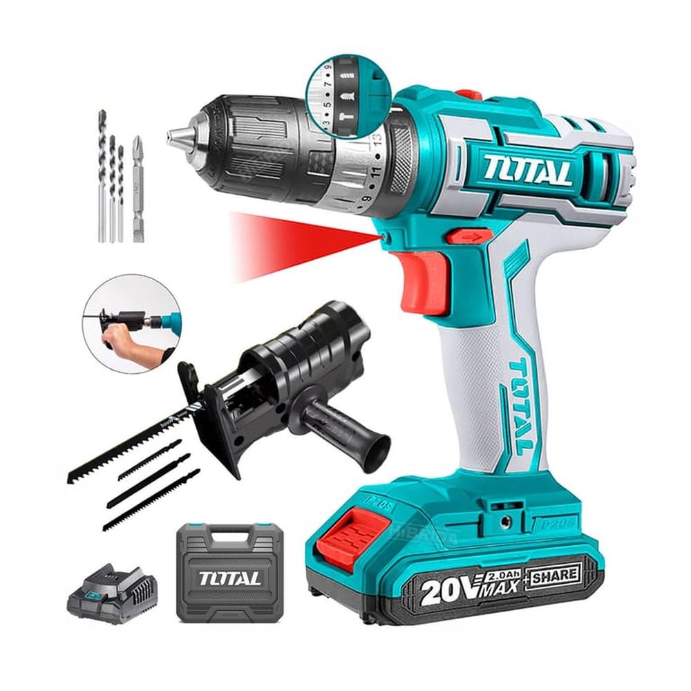 Combo Taladro Atornillador Percutor 20V Adaptador Sierra Caladora