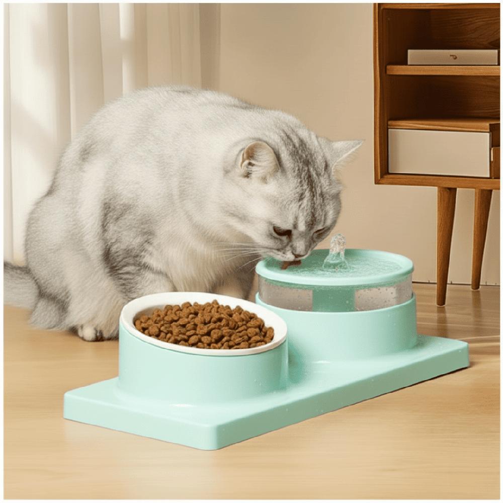 Comedero y Bebedero con Fuente de Agua Eléctrico para Mascotas Gato Perro Verde agua