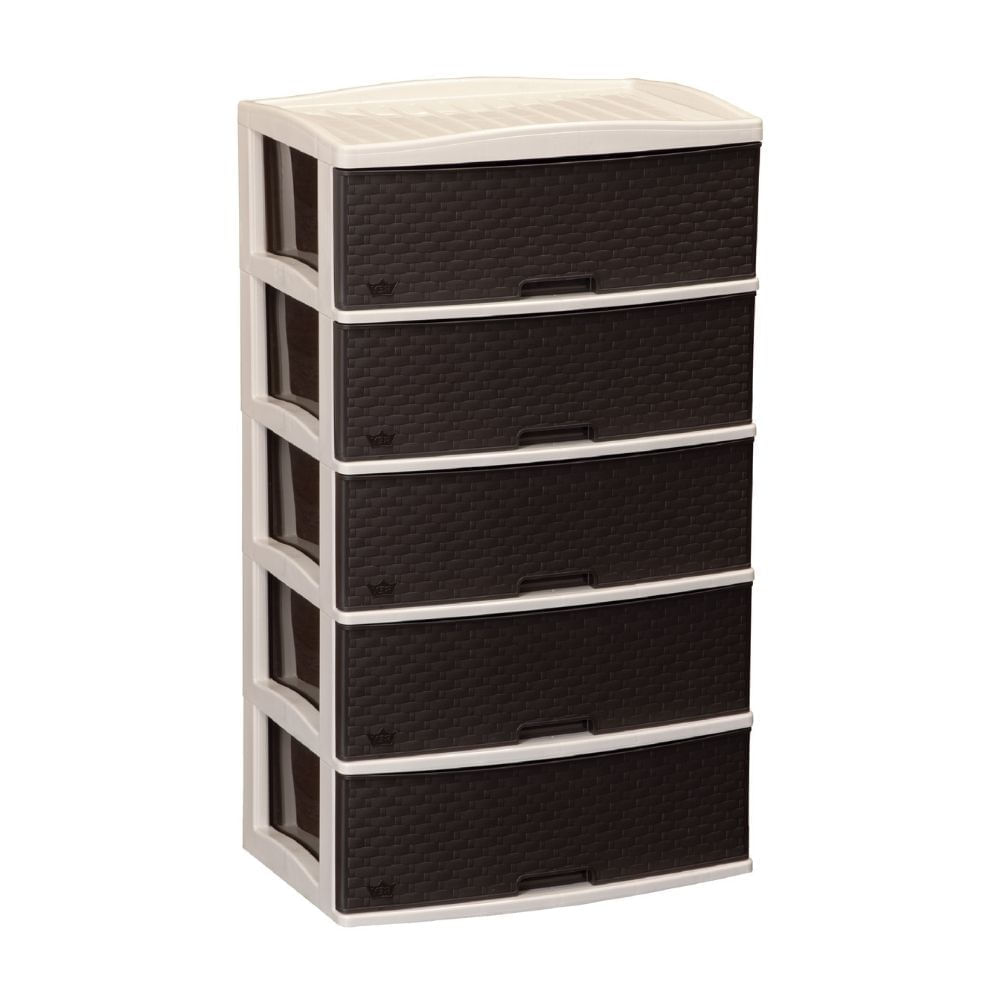 Cómoda Plástica Reyplast Kusi Ratan 5 Pisos Marrón Moro con Beige