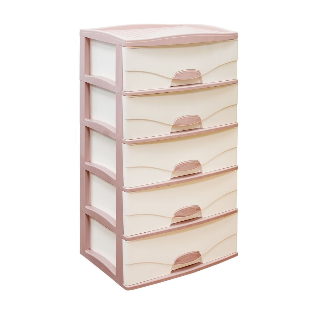 Cómoda Plástica Raymi 5 Pisos Beige Humo con Rosado Humo Reyplast