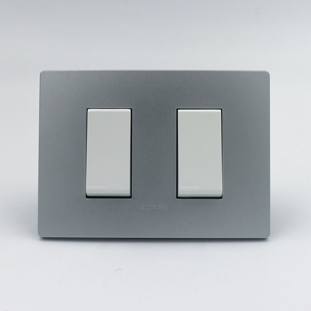 CONMUTADOR DE 3 VIAS DOBLE SINTHESI S33 PLACA PLATA Y DADOS BLANCOS