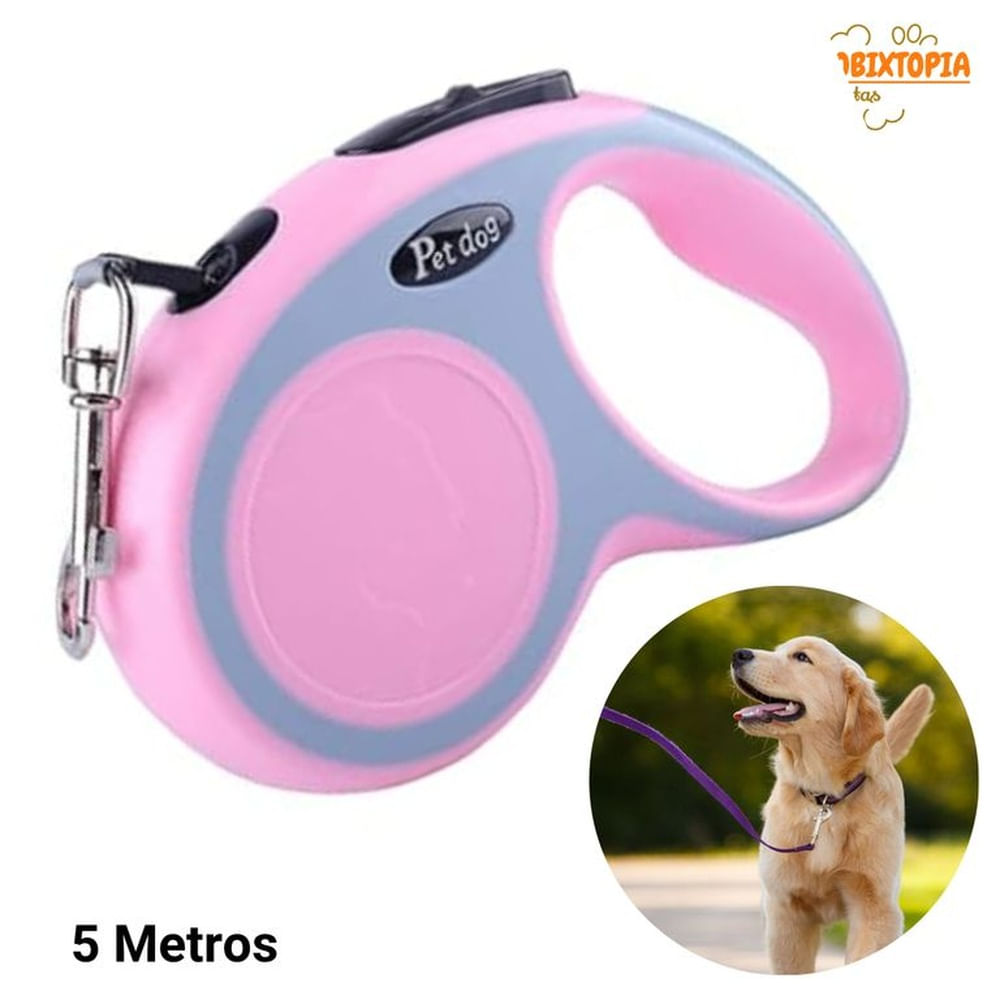 CORREA RETRACTIL DE POLIESTER PARA MASCOTAS ROSADO 5M ROSA
