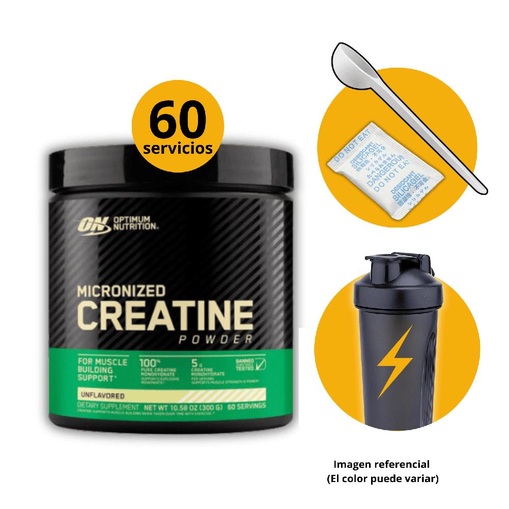 Creatina Optimum Nutrition 300gr con scoop y antihumedad Monohidratada Micronizada y Shaker