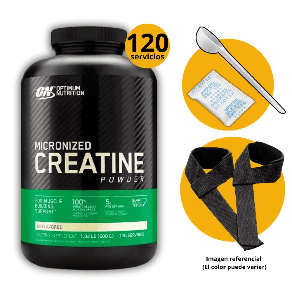 Creatina Optimum Nutrition 600gr y scoop Monohidratada Micronizada y Straps