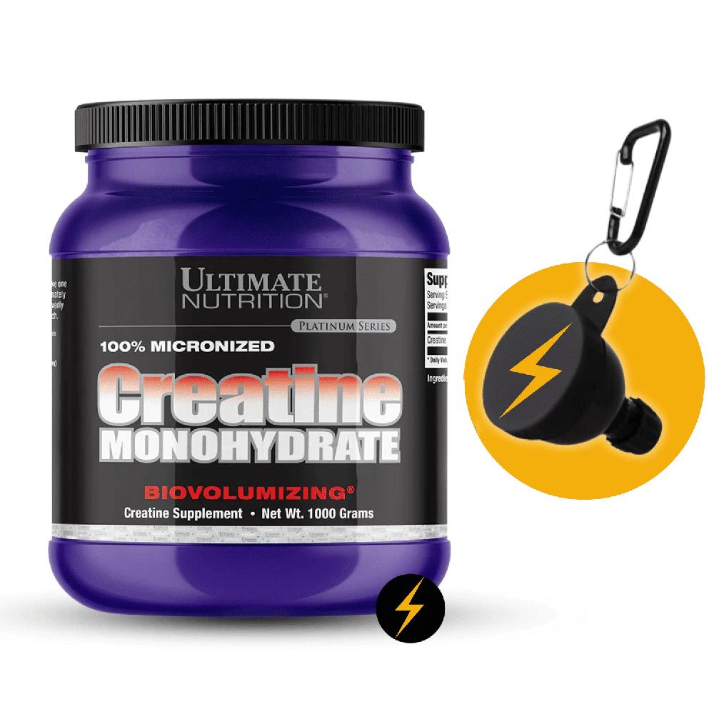 Creatina Ultimate Nutrition 1kg y scoop Monohidratada Micronizada y Portasuplementos