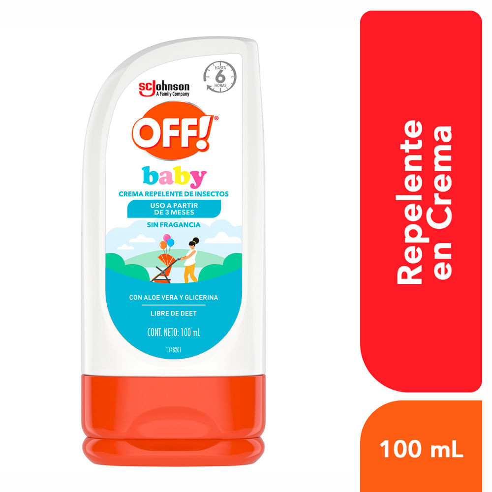 | Descripción técnica | OFF! Baby repelente crema, HASTA 6 horas de protección contra la picadura de mosquito que puede transmitir Dengue, Zika y Chikungunya |
