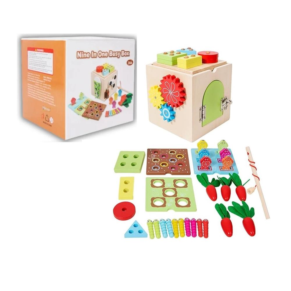 Cubo Didáctico de Madera Montessori Multifunción 9 en 1