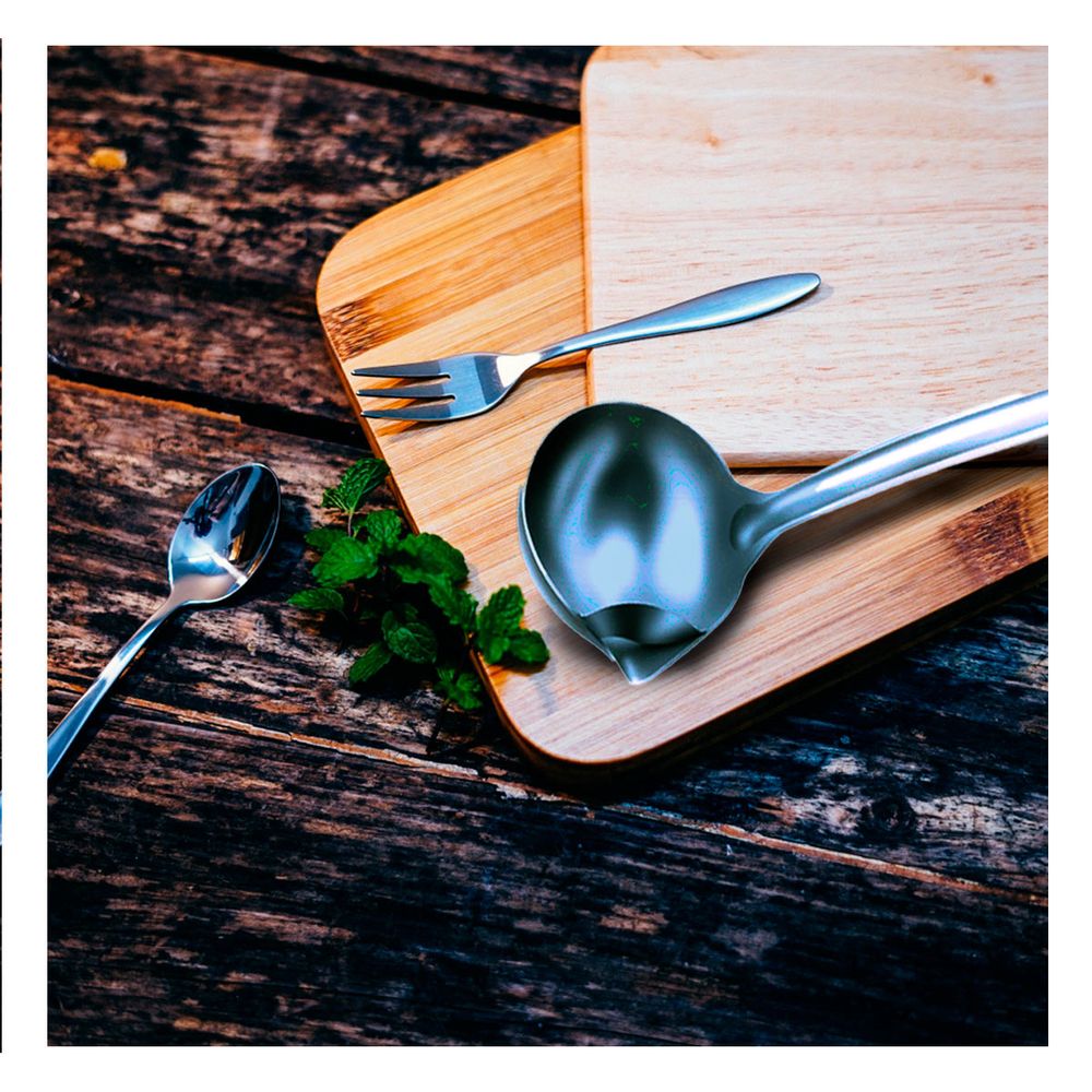Cucharon Semi Hondo Filtra Liquidos en Color Plateado