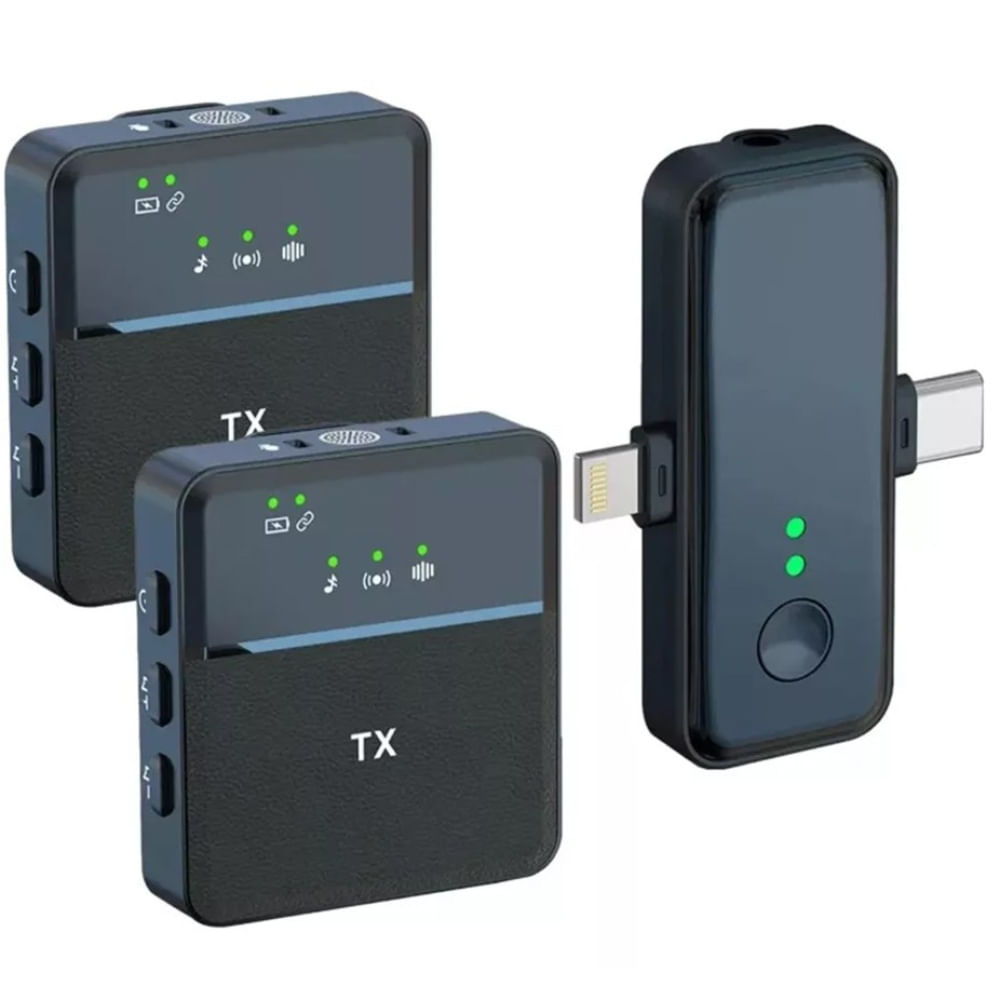 Doble Micrófono Solapa Inalámbrico Recargable 3 en 1 20 Metros