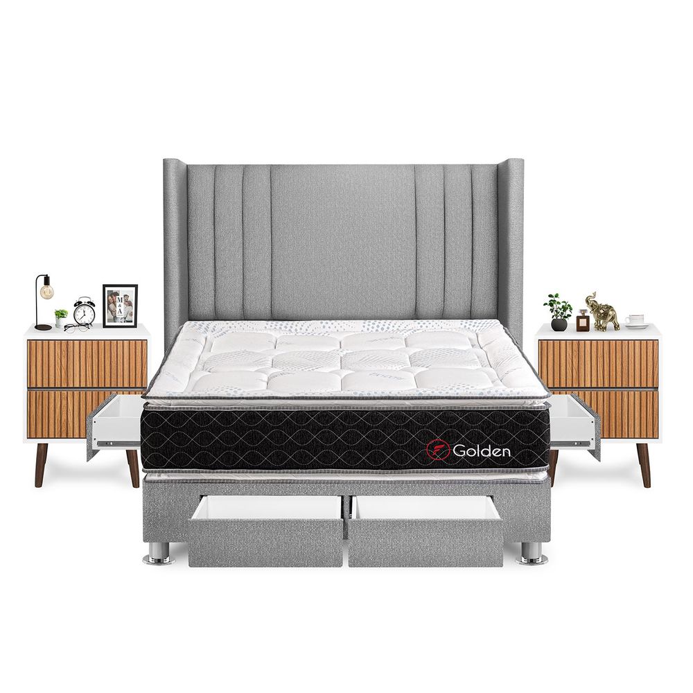 Dormitorio Golden Con 4 Cajones King + Velador Milan + Respaldo Plata