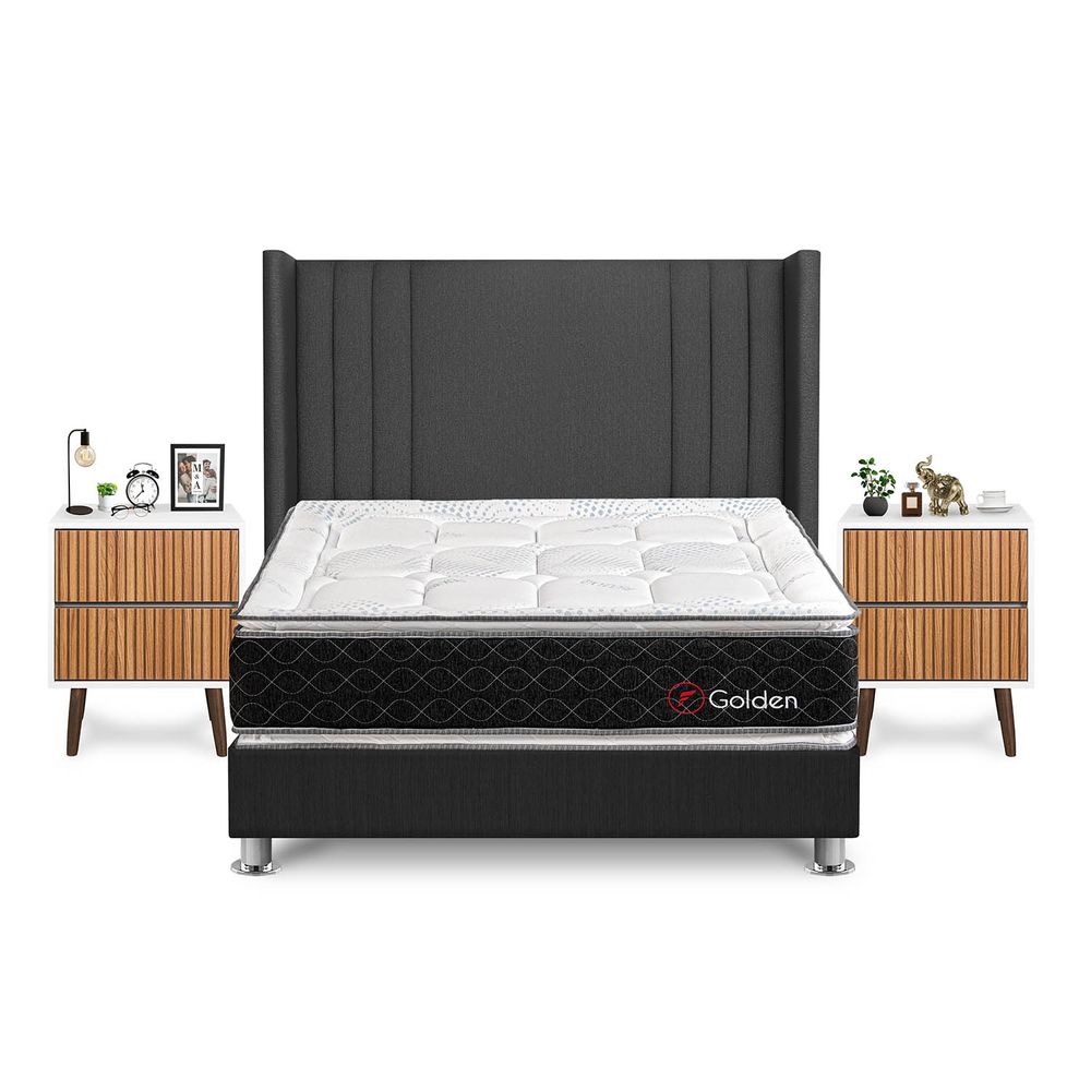 Dormitorio Golden King + Velador Milan + Respaldo Gris