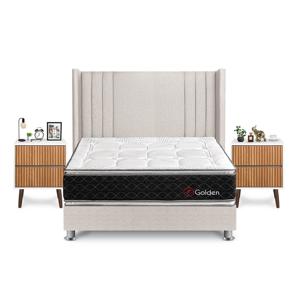 Dormitorio Golden Queen + Velador Milan + Respaldo Beige