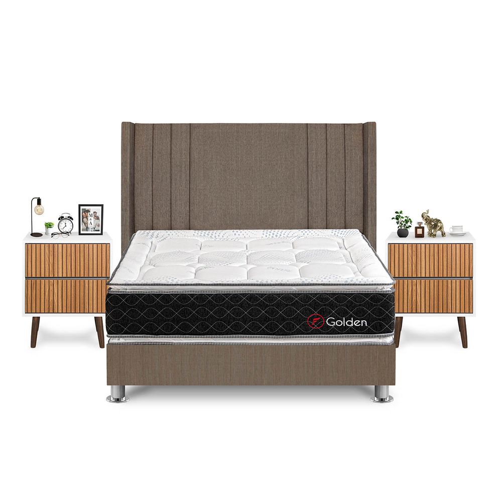 Dormitorio Golden Queen + Velador Milan + Respaldo Marron