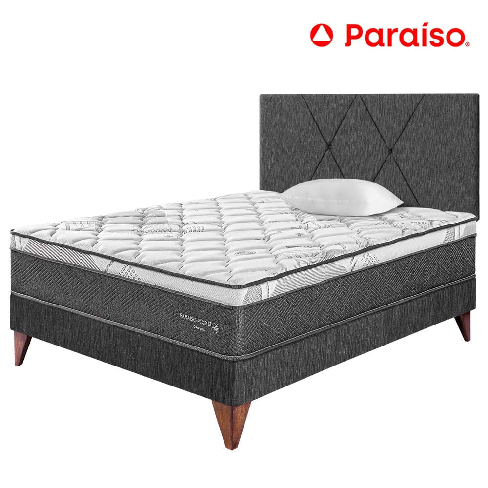 Dormitorio PARAISO Euro Pocket Star 1.5 Plazas + Cabecera Loft Charcoal + 1 Almohada + 1 Protector