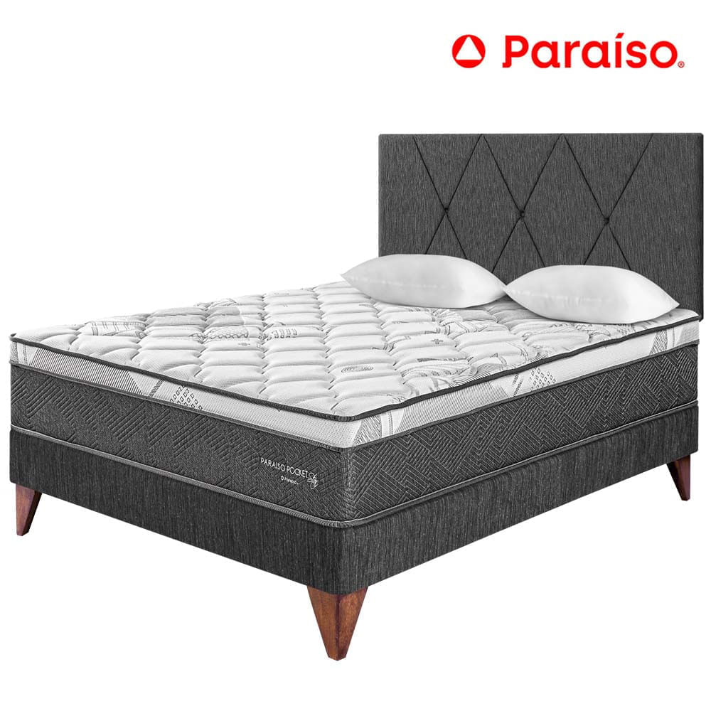Dormitorio PARAISO Euro Pocket Star 2 Plazas + Cabecera Loft Charcoal + 2 Almohadas + 1 Protector