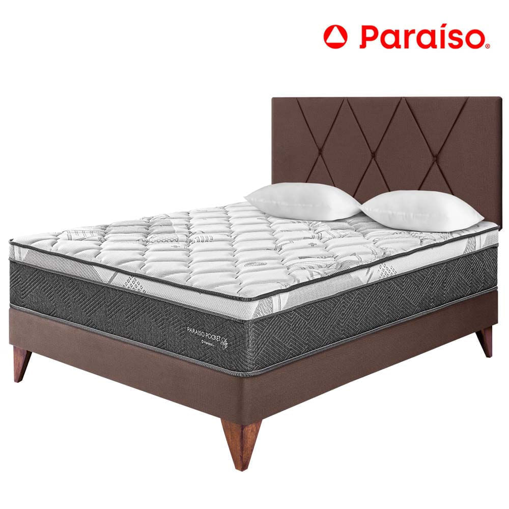 Dormitorio PARAISO Euro Pocket Star 2 Plazas + Cabecera Loft Chocolate + 2 Almohadas + 1 Protector