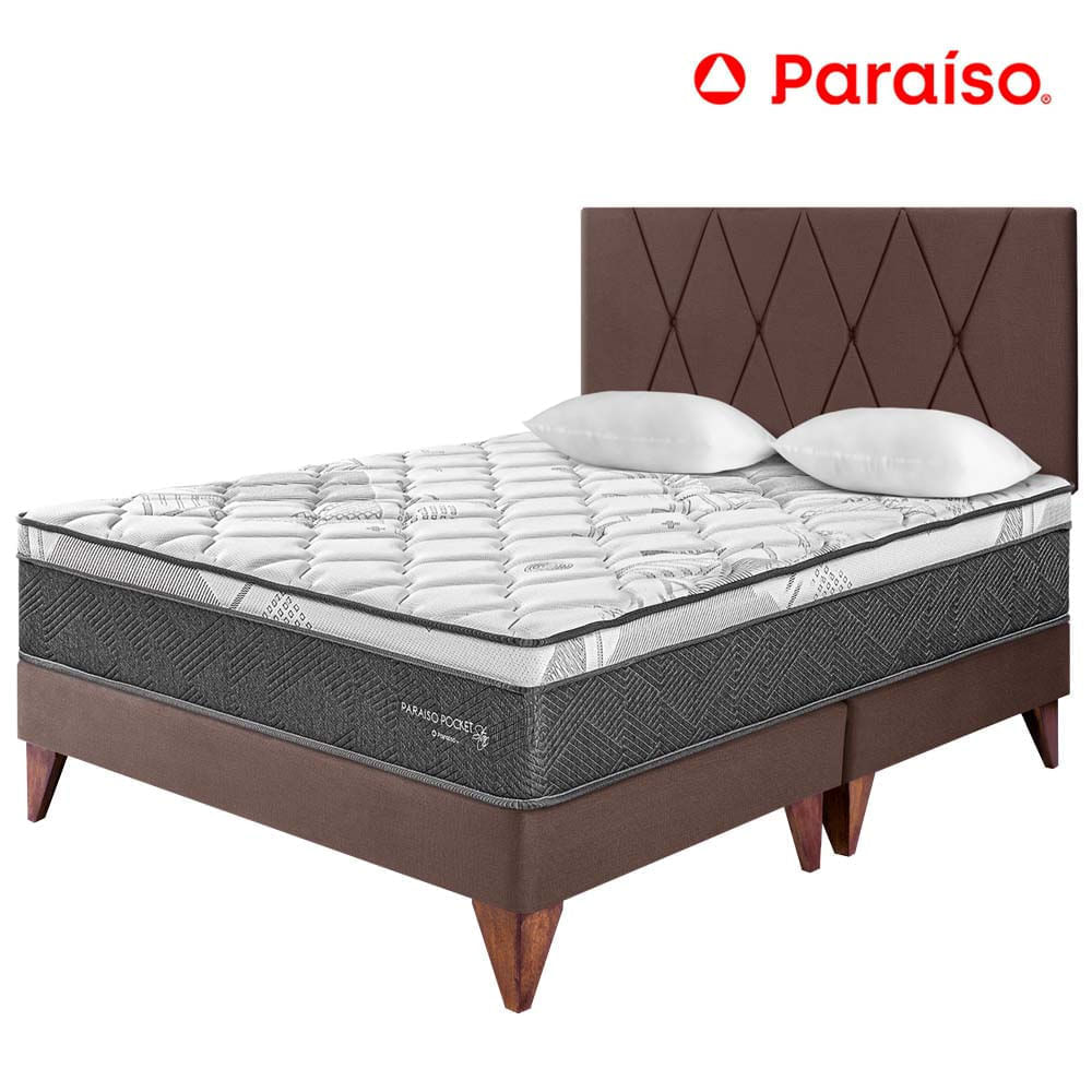 Dormitorio PARAISO Euro Pocket Star Queen + Cabecera Loft Chocolate + 2 Almohadas + 1 Protector