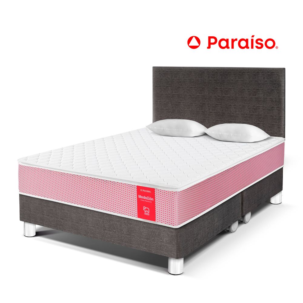Dormitorio PARAISO Medallón Acero Queen + 2 Almohadas + Protector