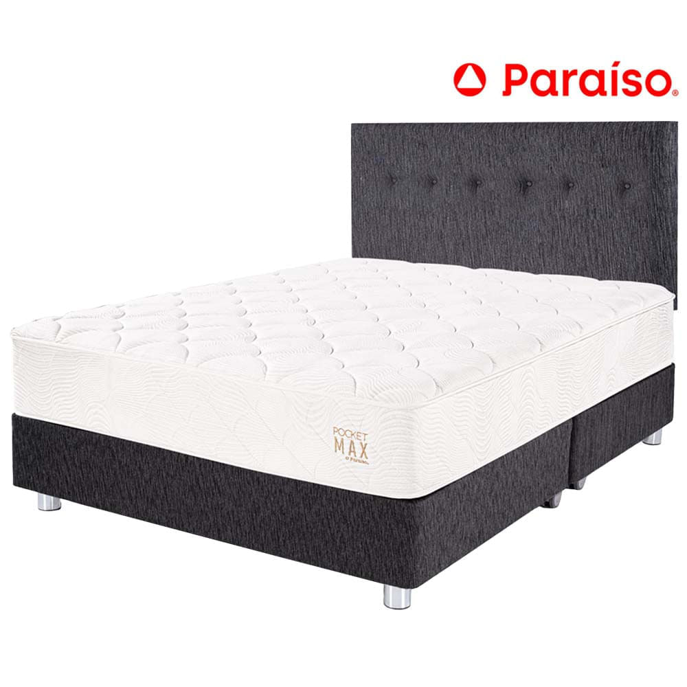 Dormitorio PARAISO Pocket Max Charcoal Queen + 2 Almohadas + Protector