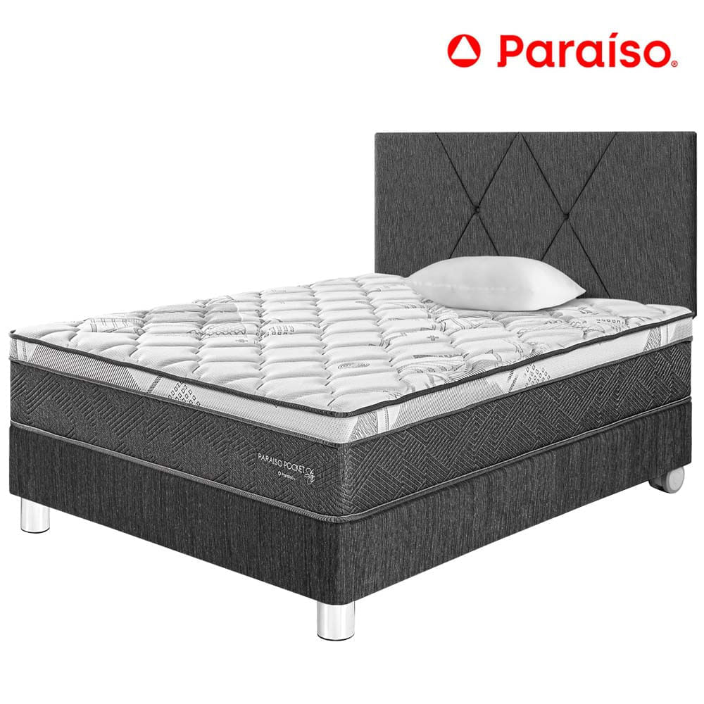 Dormitorio PARAISO Pocket Star 1.5 Plazas + Cabecera Loft Charcoal + 1 Almohada + 1 Protector