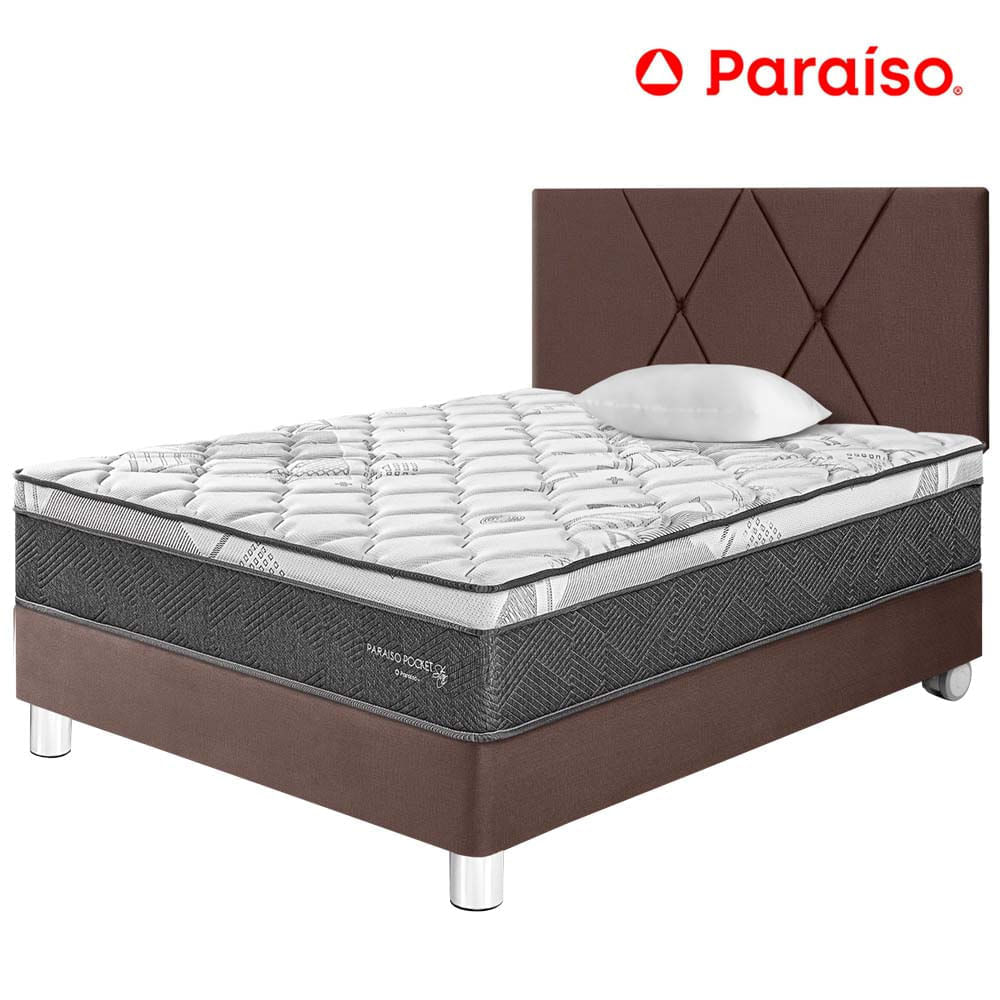 Dormitorio PARAISO Pocket Star 1.5 Plazas + Cabecera Loft Chocolate + 1 Almohada + 1 Protector