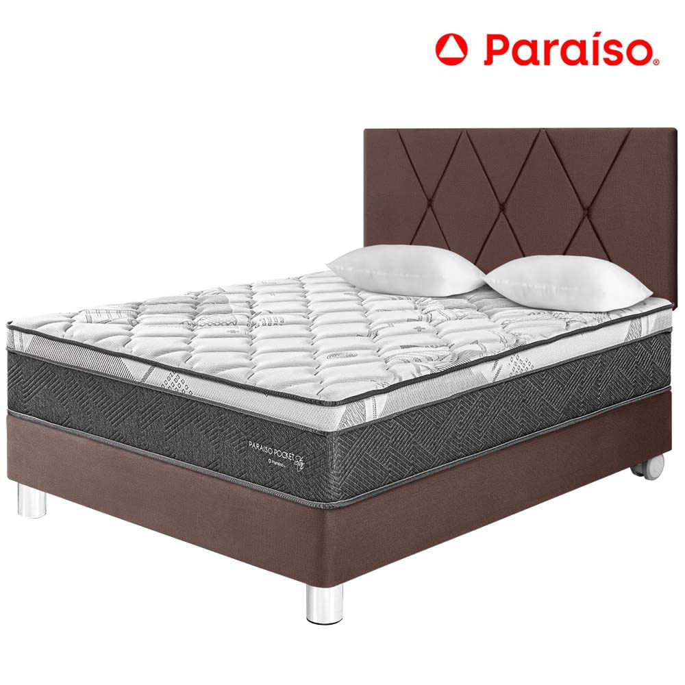Dormitorio PARAISO Pocket Star 2 Plazas + Cabecera Loft Chocolate + 2 Almohadas + 1 Protector
