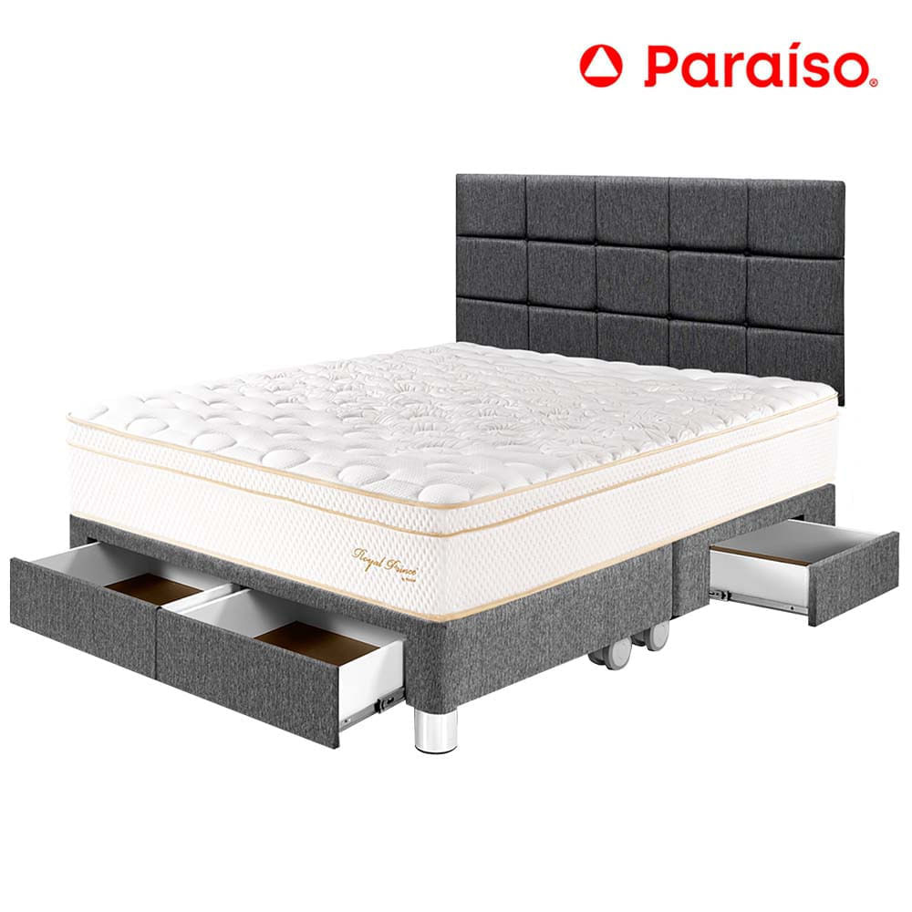 Dormitorio PARAISO Royal Prince C/Cajones Queen + Cabecera Blocks Gris + 2 Almohadas + 1 Protector