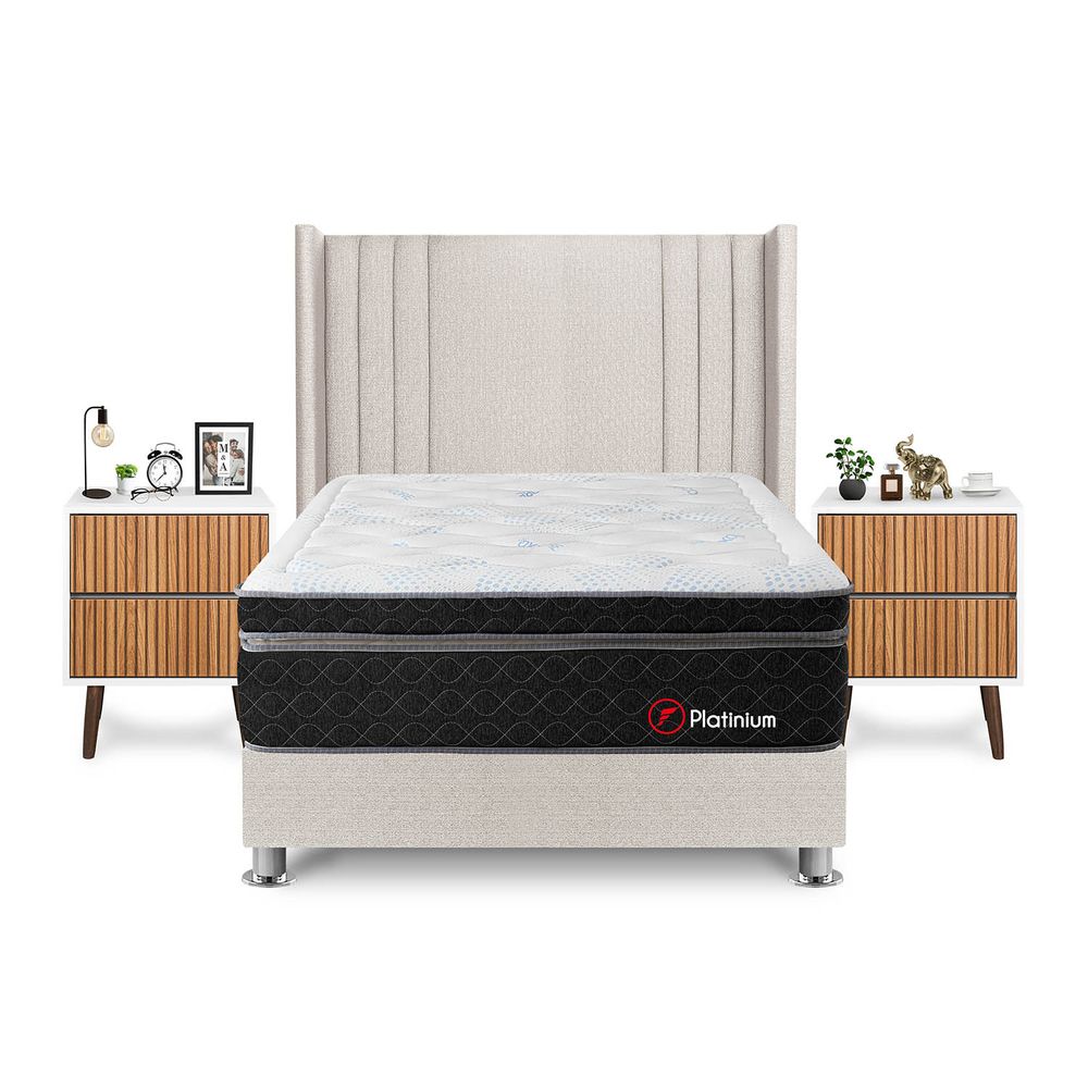 Dormitorio Platinium 2 Plazas + Velador Milan + Respaldo Beige