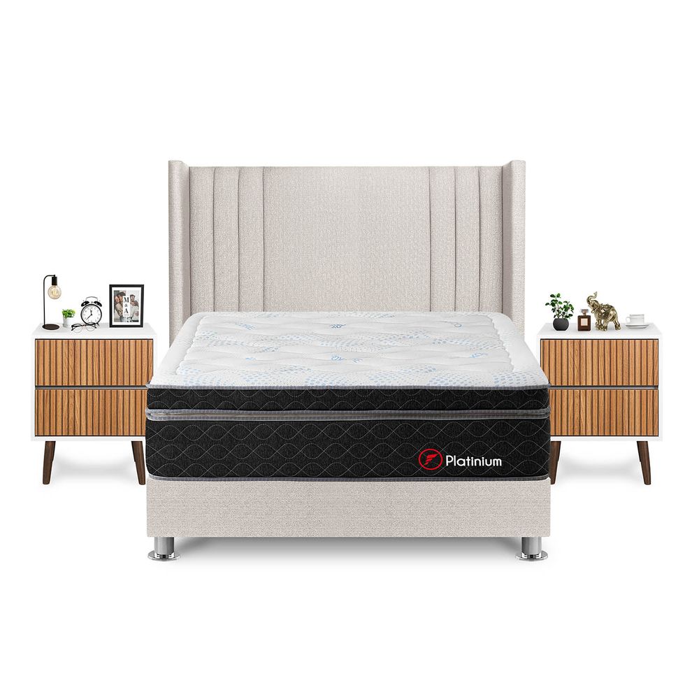 Dormitorio Platinium Queen + Velador Milan + Respaldo Beige