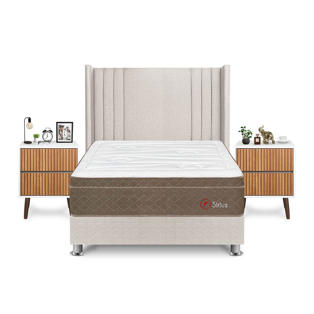 Dormitorio Sirius 2 Plazas + Velador Milan + Respaldo Beige