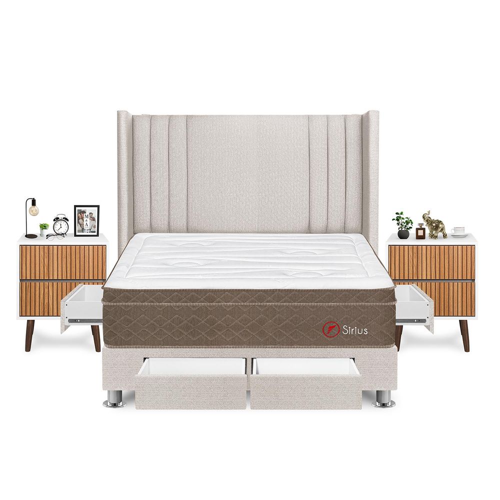Dormitorio Sirius Con 4 Cajones King + Velador Milan + Respaldo Beige