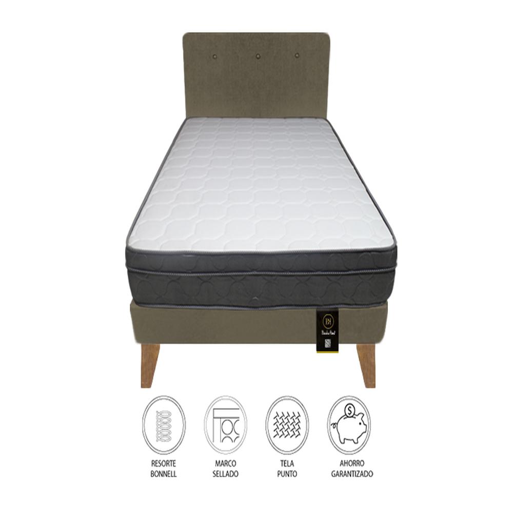 Dormitorio Turin Slim 1.5 Plz + Cabecera + Almohada - Beige Oscuro