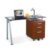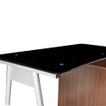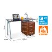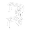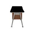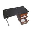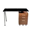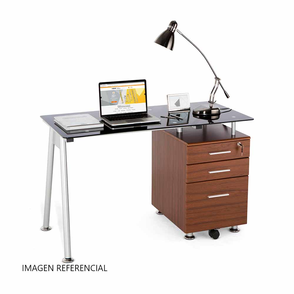 | Características | Estructura de Acero y mueble cajonero de MDP. Base de 6 patas de Acero cromado con insertos de goma para evitar que se deslice. Mesa de vidrio laminado de 7 mm de espesor color negro adosado directamente a la estructura de acero y al mueble cajonero. Viene con 3 cajones de estructura de MDP en acabado de Melamine, tiradores de plástico y correderas standard. |