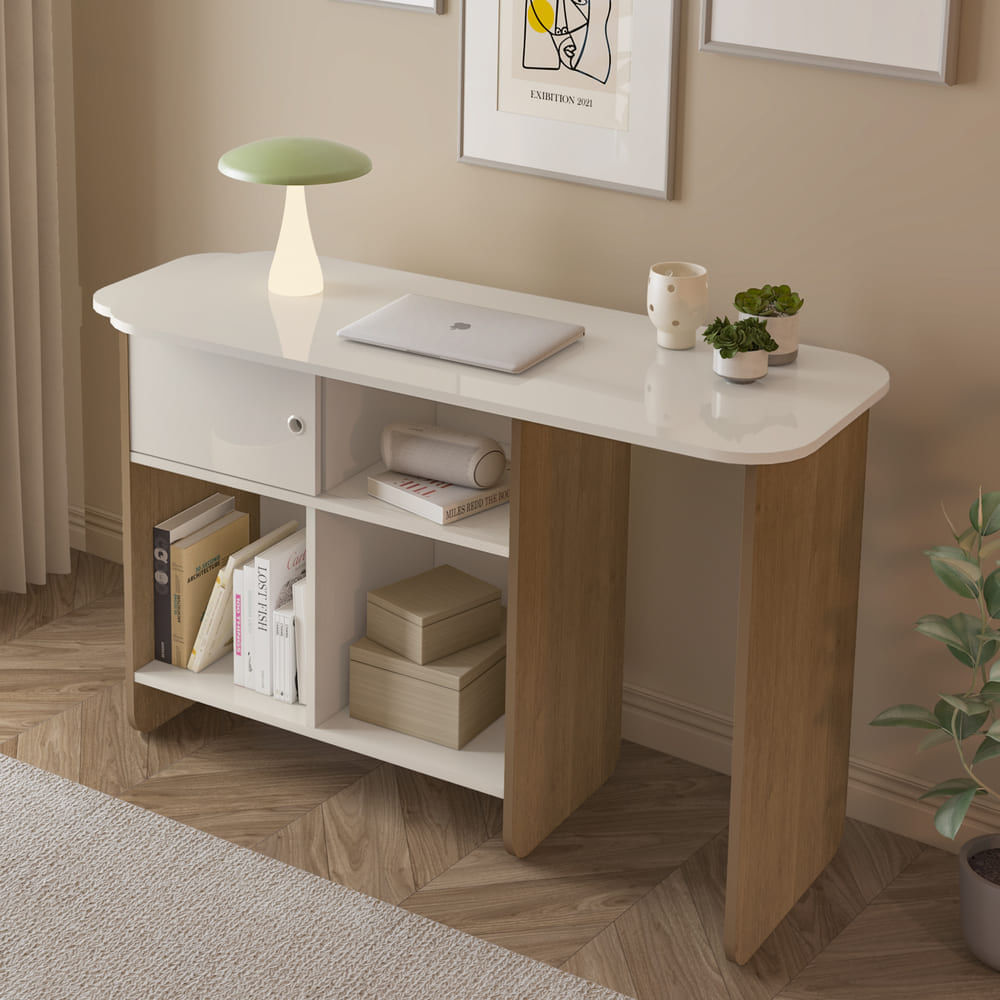 Escritorio en L Nomad Cerezo/Blanco Artely
