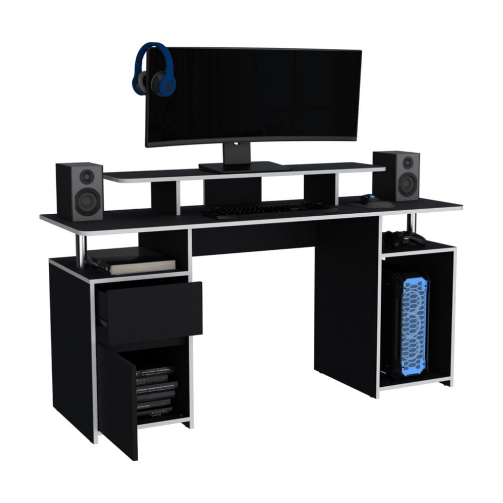 Escritorio Gamer Keria 1 Cajón Wengue/Canto Blanco Tuhome
