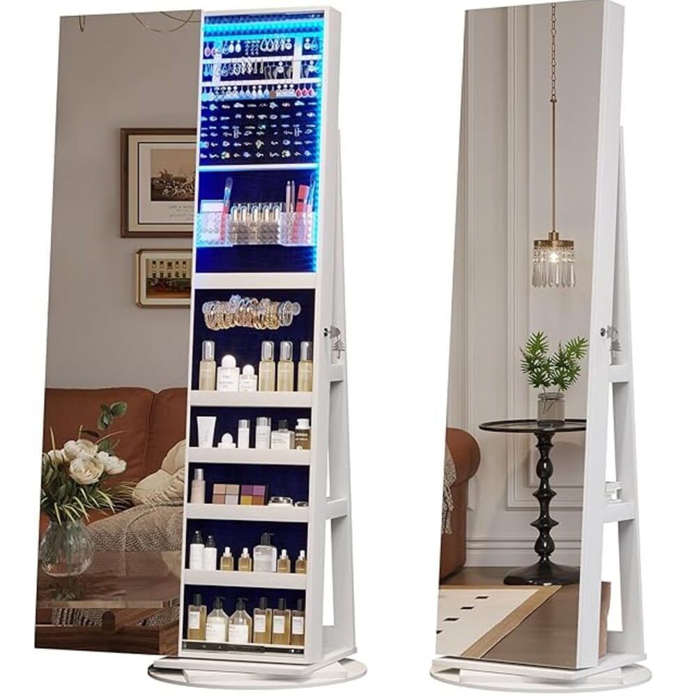 Espejo Giratorio con Organizador de Joyas Sakia Blanco TU MESITA