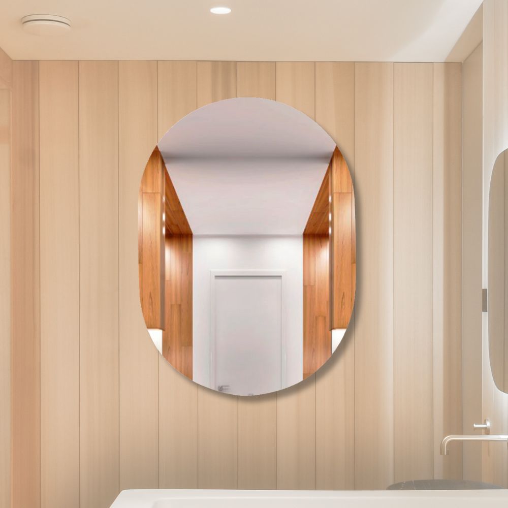 | Características | Espejo para baño de 100% vidrio, el cuerpo se compone de 1 solo espejo con bordes curvos, en la parte trasera viene con soporte de acero para poder colgarlo en la pared. |