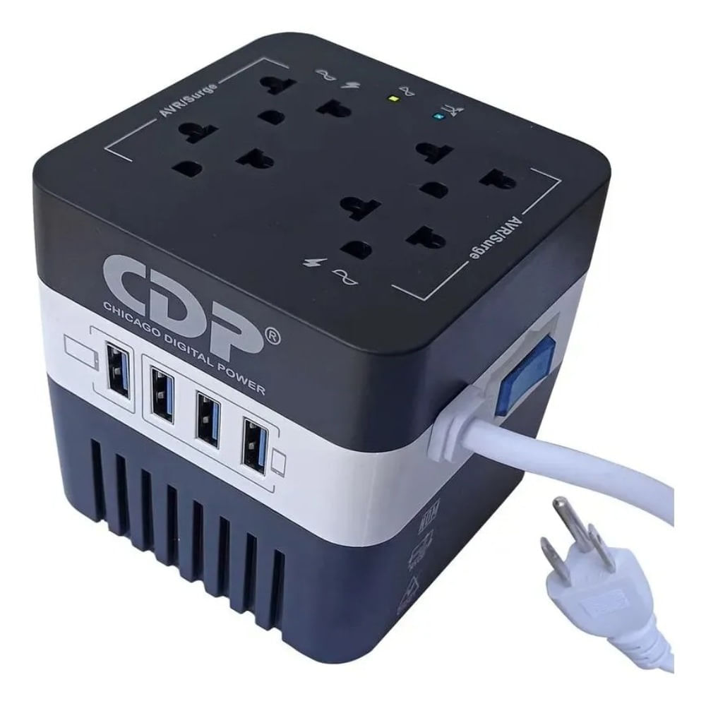 Estabilizador Cdp Ru avr6041 600va 300w 4 Salidas 4 Usb Bn Negro