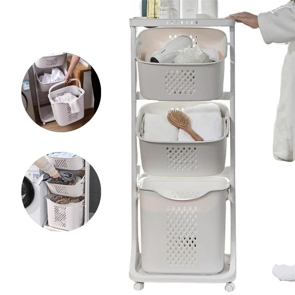 Estante Organizador De Lavandería De 3 Niveles Con Repisa Y Ruedas 4190004